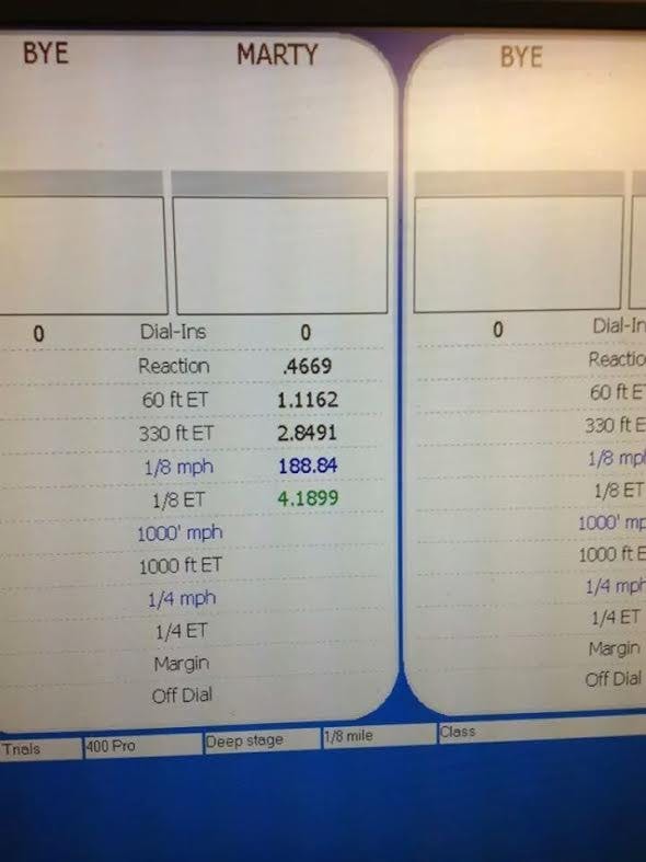 Stinnett’s machine has been in the winner’s circle numerous times over the last few years, but this is a feat we can’t even begin to wrap our heads around – a car running nearly 190 MPH in the eighth-mile on the tiny 275-wide radial is just surreal.