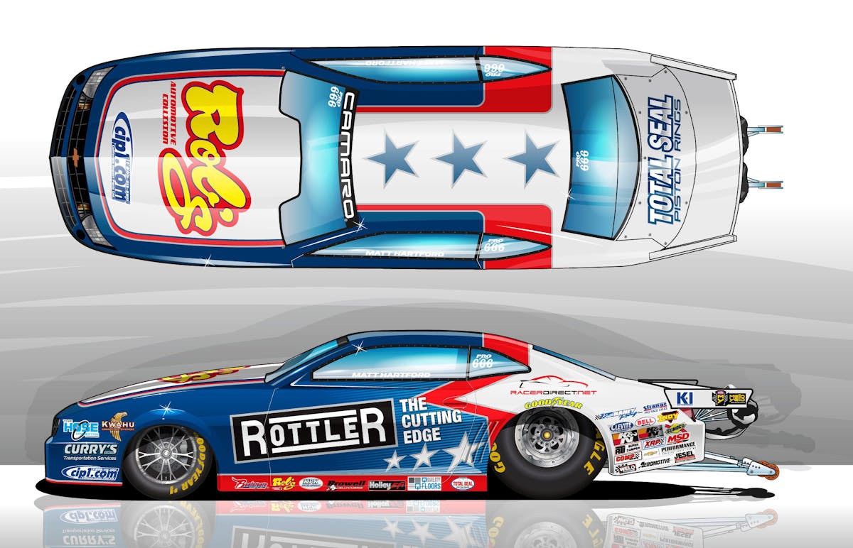 Rottler Manufacturing will provide a striking new look for Matt Hartford Racing and his Total Seal Piston Rings / CIP1 Pro Stock Camaro during the CatSpot NHRA Northwest Nationals in Seattle, August 3-5, 2018.