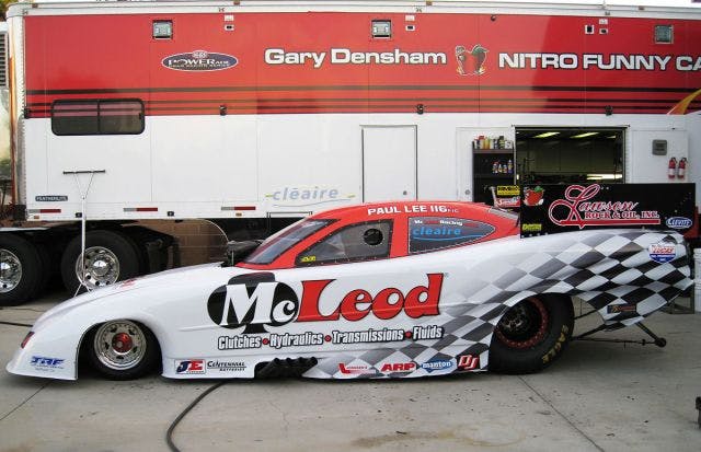McLeod Racing and company President Paul Lee announced today a two-race partnership with drag racing veteran Gary Densham and his family-owned team for the final two races on the NHRA Full Throttle Drag Racing Series schedule in Las Vegas and Pomona, Calif. McLeod Racing will serve as the primary sponsor of the Gary Densham Motorsports Funny Car at the NHRA Big “O” Tires Nationals and the season ending NHRA Auto Club Finals with Lee, a seasoned nitro pilot, at the controls.