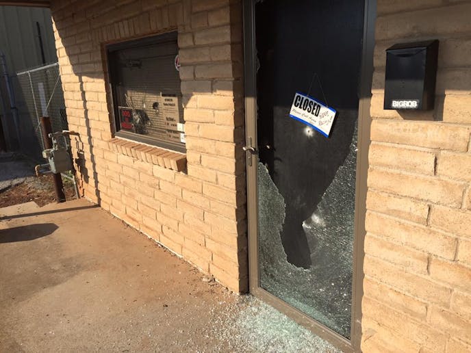 We’ve had a terrible turn of events here at Midwest Street Cars. Overnight, someone walked up to our store with semi-automatic weapons and unloaded on our storefront.