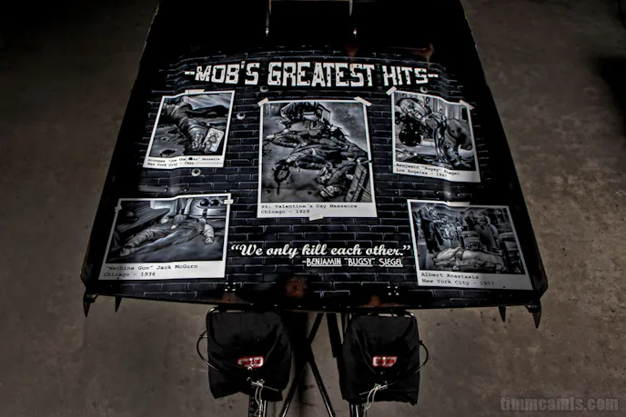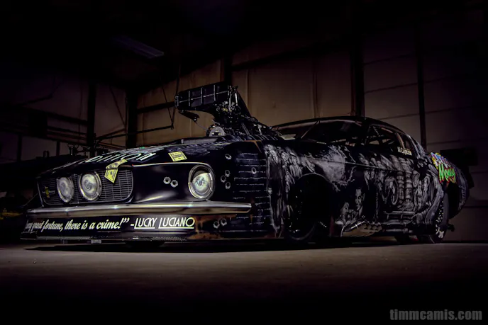 The “Mob Edition” Blown Money Racing Mustang, which can you read about in detail in our original feature, carries a Mob-style theme throughout, with airbrushed portraits of famed mafia members and even real $100 bills on the cars exterior, while the interior features such touches as a knife-like parachute lever, a shifter made to look like a Tommy gun, and fire bottles painted like dynamite. The car is a head-turner down to the last detail, and in some respects, is almost too immaculate to race. But Knowles, who has always gone above and beyond in the appearance department — from his race cars to the transporter he hauls them in — wouldn’t have it any other way.
