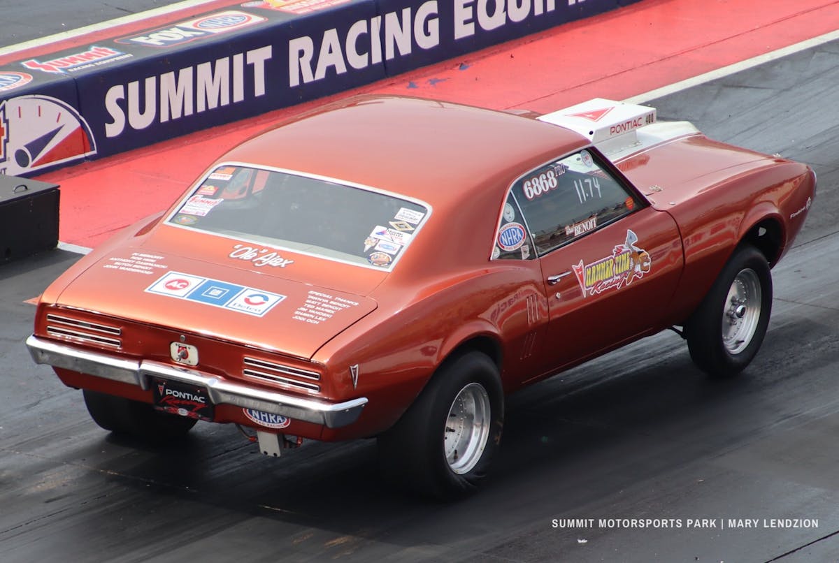 Clemens Muscle Cars No Box on Friday: Drew Kelleman of Wadsworth, Ohio and Alex Tavana of Erie, Pennsylvania strapped in and stomped on it. Kelleman pulled off the win with an .043 on the starting line and 10.26 at the finish line in his Ventura, while Tavana turned in an .039 and 10.56 in his LeMans.