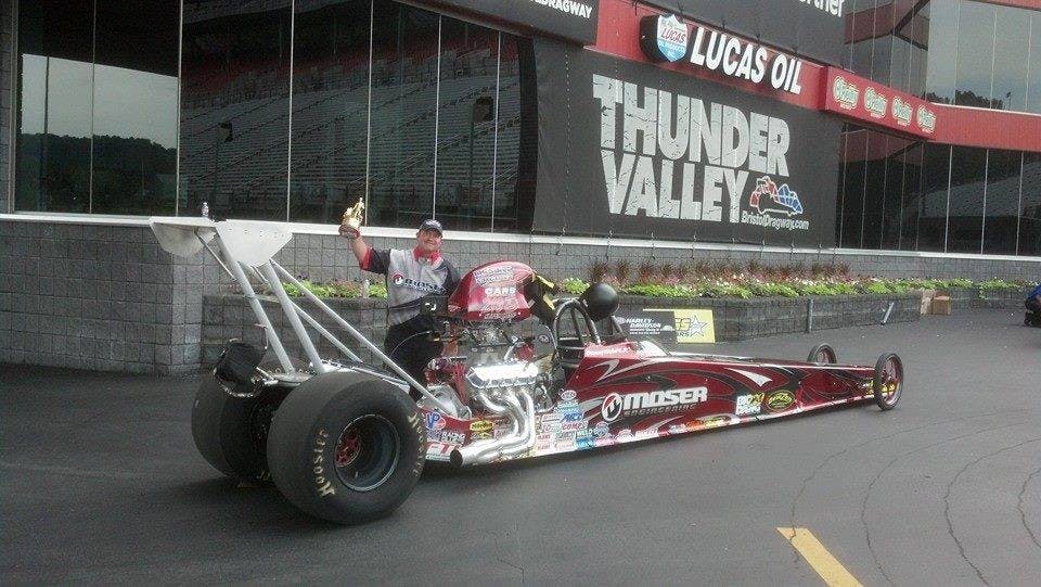 While Cummings was doing work in Oklahoma, Danny Waters was down south at the Bristol Dragway, where the Southeast division was contesting its fifth event on the 2014 racing calendar. Waters, with an intriguing driving resume of his own, motored through five rounds of eliminations in Super Comp with his Moser-backed dragster to reach the final round to take on Ray Miller. The match was over nearly as quickly as it began, however, as Miller pulled the trigger too quick, handing the win to Waters, who would’ve been hard to beat with his .004 light.