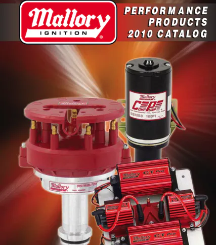 The new 2010 Catalog from Mallory is now available. This catalog will feature new ignition and performance products as well as numerous tech tips. In this catalog you will find many new products including: the Maxfire, E-Fire, Specialty Custom and ProMaster line of distributors and coils.Official Release