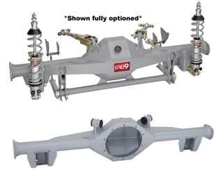 The FAB9™ housing features strategically placed control arm mounts to improve performance, and works perfectly with OEM or aftermarket control arms in the factory mounting locations. Lower-control-arms mount at one of four axle bracket positions, permitting anti-squat adjustment and suspension geometry optimization for your particular vehicle. When used with coil-over shocks, included shock mounts provide three positions with a ride-height adjustment range of 1-3/4″. An optionally available shock mount set increases the adjustment range to 3-1/16″ and eight positions.