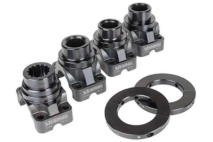 “This pass is being recorded for quality assurance.” Strange Engineering, the leader in aftermarket driveline and suspension, has again responded to the needs of its customers by releasing a line of chrome moly pinion yokes that accept magnetic sensor collars for data logging. The high strength chrome moly yokes are available with 2, 4 and 8 magnet collars. Applications include 8.8” Ford, 10 bolt and 12 bolt Chevy, Dana 60, and ’57-’64 Olds rear ends. (Sensor & sensor mount not included).
