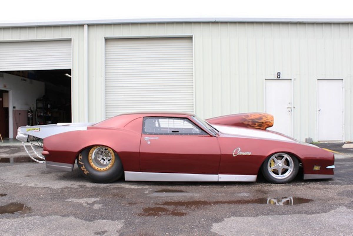 He took delivery of the chassis nearly three years ago and started plugging away when time allowed. Robert Coady of Category 5 Race Cars handled assorted fabrication to mount the Suncoast Race Cars 68 Camaro body. Recently local racer Darren Burns has helped out with plumbing the fuel system and clear coating the air brush work done by Gary Smith, among other things. Darren also works at Sunshine Dragstrip doing the track prep there and other general maintenance as needed.