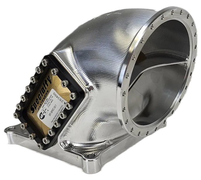 This specific elbow is crafted to connect its 123mm billet throttle body (PN 471123V) to a 4500 series intake manifold and employs a V-Band mechanism for secure attachment. Thank BIG boost! Wilson provides a V-Band completion kit, allowing you to purchase the entire set in one location.