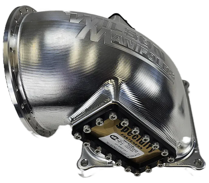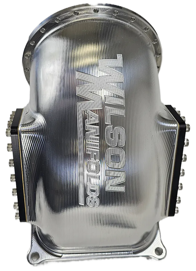 Wilson Manifolds’ new billet elbow offers the most effective way to connect their performance, single-bore throttle bodies to 4500 series intake manifolds. This elbow from Wilson Manifolds features a computer-enhanced transition from the throttle body to the intake manifold plenum, optimizing airflow and distribution. Each elbow is precisely CNC-machined to fit respective throttle body sizes.