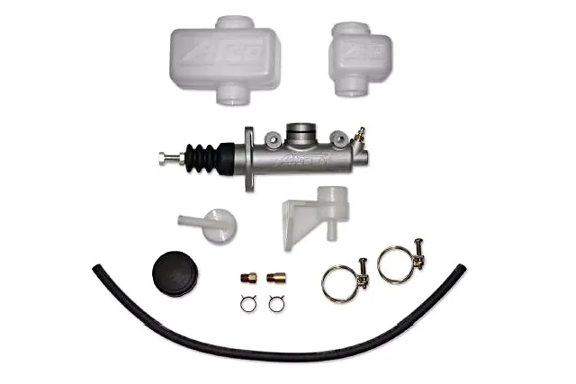 AFCO Racing Products is proud to announce the launch of our new Remote Reservoir Master Cylinder Kit. AFCO’s master cylinders feature an external return spring that maintains positive pedal feel and helps prolong pad life by promoting quick caliper release. AFCO’s Remote Reservoir Master Cylinder Kit comes in 3/4″, 7/8″, and 1″ bores and offers a common dual-mounting bolt pattern for most racing applications. The slim-design rubber boot allows easy installation into most pedal assemblies.