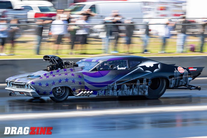 Balduf has been a standout driver regionally and in the PDRA for many years; his signature Batman-themed paint job is still a major feature on his new Andy McCoy Race Cars-built 1969 Chevelle. A Noonan HEMI topped off with a Mike Janis roots supercharger provides the horsepower, while a Quick Drive and Liberty 3-speed transmission put the power to the ground.