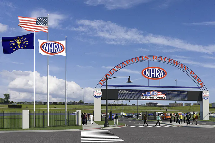 Another key aspect of the redevelopment is the introduction of a new entrance on the west side of the property, creating a direct road from the town of Brownsburg. This new access point will significantly improve traffic flow and accessibility. “We want a welcoming front door to this facility that represents the NHRA, the U.S. Nationals, and the history of this facility in the proper regard.” says Coler.