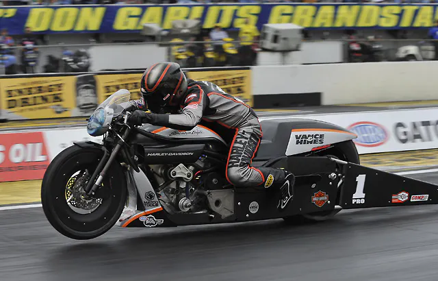 Following an on-track performance at the NHRA Gatornationals that triggered a performance review with the NHRA Competition Department and a public outcry of monumental proportions from the racers, fans, and media in the days that followed, the NHRA this afternoon announced a new weight adjustment for the 160 cubic inch, 4-valve Harley Davidson combination. Beginning at the O’Reilly Auto Parts NHRA Spring Nationals in Houston, Tex. April 27-29 – the next stop on the 16-race Pro Stock Motorcycle schedule – the minimum weight for the Screamin’ Eagle Vance & Hines Harley Davidson’s of riders Eddie Krawiec and Andrew Hines will increase 20 pounds, from 640 pounds to 660 pounds.