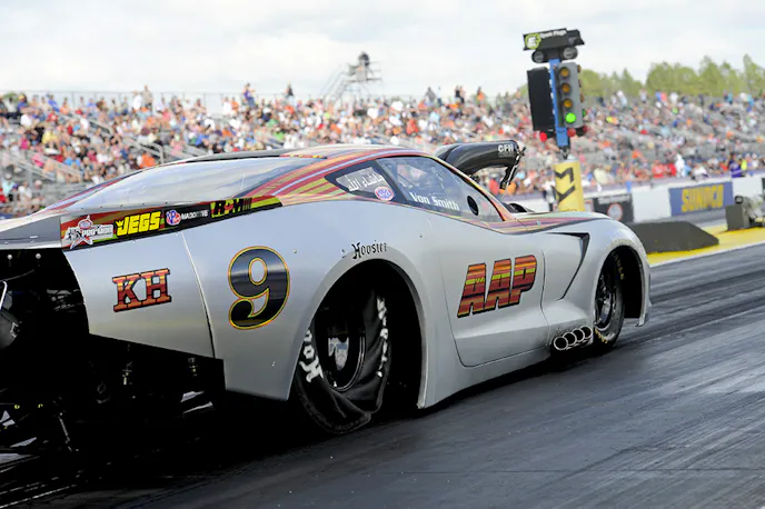 Earlier: The NHRA J&A Service Pro Mod Drag Racing Series brings to a close its 2016 season this weekend at The Strip at Las Vegas Motor Speedway, and the biggest topic in the pit area — other than Rickie Smith almost assuredly wrapping up his third title in four years — will be the rule amendments that the NHRA technical department released earlier this week, which brought about significant changes for some supercharged and turbocharged racers.
