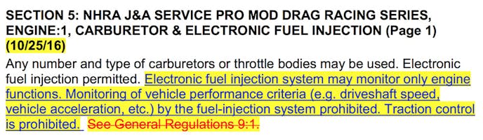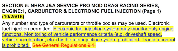 The NHRA has also doubled-down on the prohibition of traction control devices and systems, which is becoming contained within engine management systems in increasing numbers. However, Gray confirms that no ECU’s currently on the market have been blacklisted, but they will, as always, be subject to spot checks to ensure the traction control functionality is inactive.