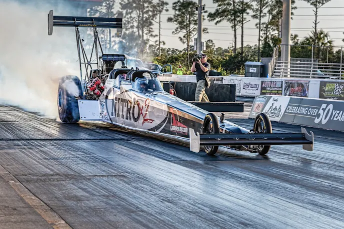 Three-time NHRA Top Fuel world champion Larry Dixon has been suspended indefinitely from NHRA Mello Yello Drag Racing Series and Lucas Oil Series competition, it was announced today. The decision, according to the statement, centers on an unapproved two-seat Top Fuel dragster that Dixon revealed at the SEMA Show in Las Vegas, Nevada last week. Promotional video and imagery depict the unique “NitroX2” dragster running only at the Palm Beach International Raceway, an IHRA-sanctioned facility, suggesting there’s more to this story than meets the eye.
