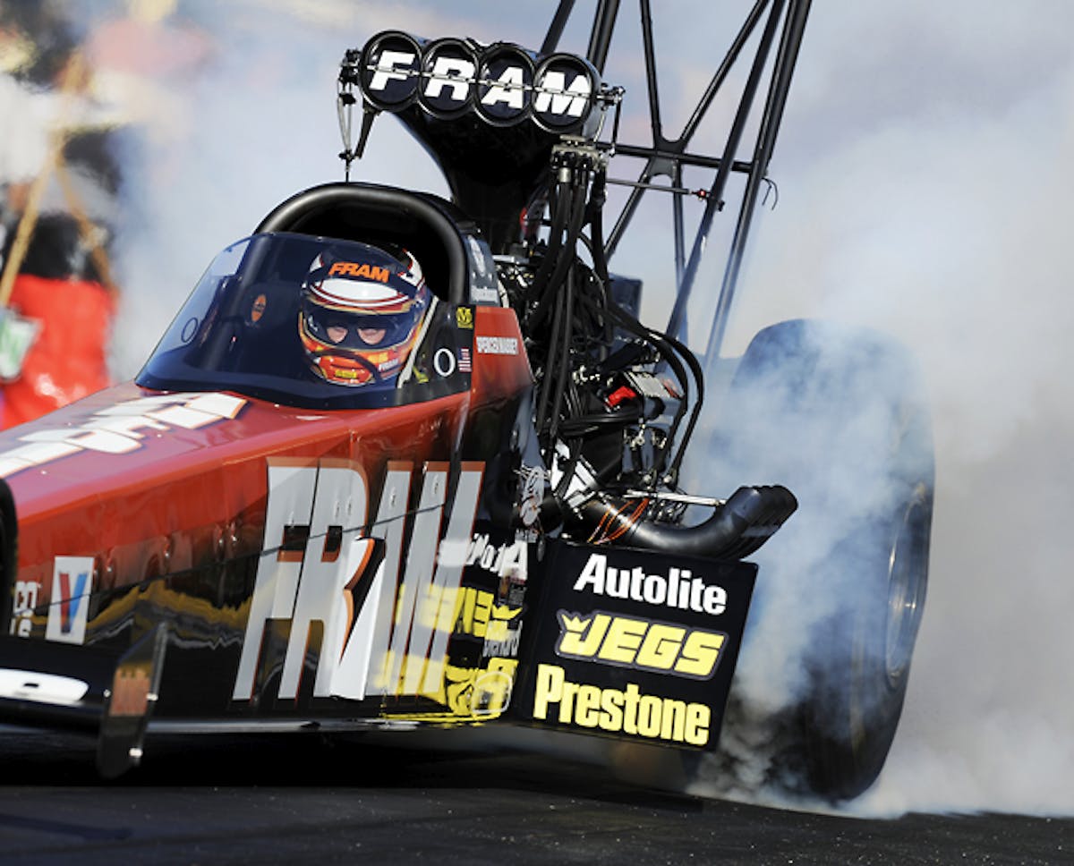 Massey said his Prestone/FRAM Dragster crew tries to beat the others in the Don Schumacher Racing pits in servicing and warming up the car between elimination rounds.