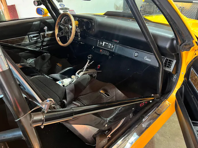 “It still has power steering — I love that part,” Garza said. In true Pro Street form, Garza’s Camaro runs a reverse valve-body, transbrake-equipped Turbo 400 using a CW bellhousing and a Hughes Performance 4,500-rpm stall torque converter.
