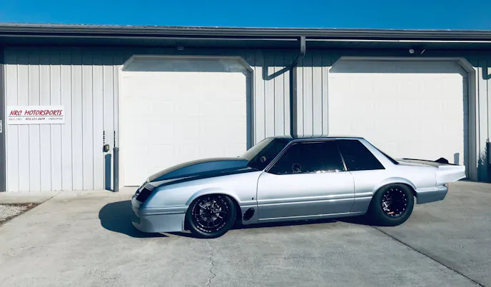 California racer Joe Pelayo, a member of the world famous AV Boys street racing squad, is set to join the fledgling small-block no-time ranks on the East coast in a stunning new four-eye Fox body Mustang fresh out of the NRC Motorsports shop in Aiken, South Carolina.