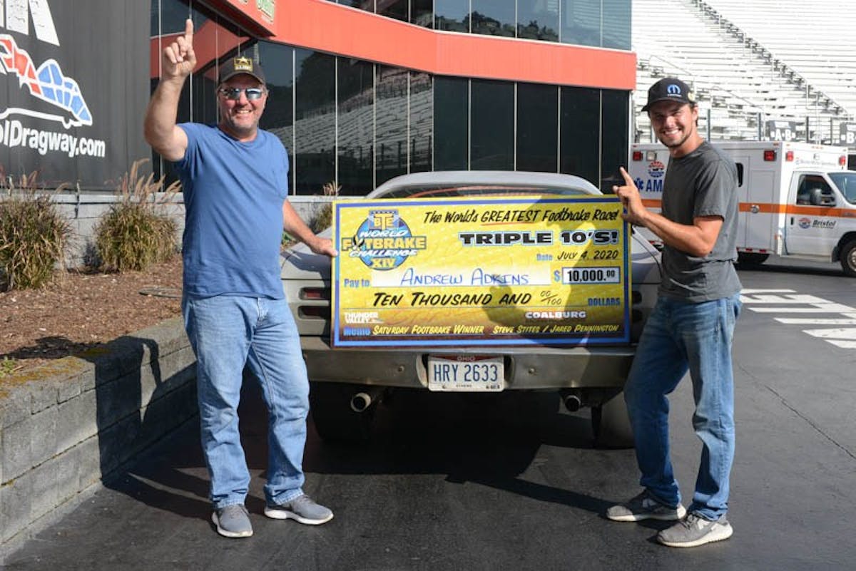 Ohio native Andrew Adkins was the hero of the every-man at this weekend’s BTE World Footbrake Challenge after he drove his Plymouth Duster nearly 300 miles to the Bristol Dragway in Tennessee and scored a $10,000 payday.