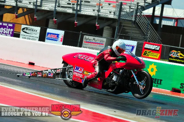 In Pro Extreme Motorcycle, class frontrunner Ashley Owens from Decatur, Ala. had been knocking on the door of the first thee-second pass in class history for much of the season, and on Saturday, entered eliminations once again atop the qualifying sheet with a 4.02. But, that was only a precursor to what was to come, however. In the second round of eliminations, Owens uncorked a 3.989 at 177.42 MPH alongside reigning champion Kim Morrell, permanently inking his name into the record books as the first and only in the ‘three’s’. But he wasn’t done just yet, as a 3.977 in the final round put an exclamation on a dominating performance.