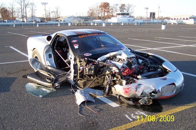 Major’s Corvette after the extremely hard impact with the right wall at Englishtown
