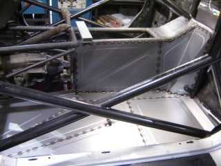 As 2010 graced its presence the rebuild was already burning the midnight oil at the Halifax, Massachusetts based DMC. Dennis and his crew started cutting away the torn and tattered body panels and well as the extensively damaged front end of the chassis. From the looks of the progress it has been taken on as it were a brand new build due to the extensive damage. One of the unique features is that Dennis has incorporated a removable transmission tunnel for ease of access during transmission swaps. That is one of the gremlins that Paul has endured over the past few seasons due to the extreme heat from the turbo piping running through the car towards the back of the rear mount setup.