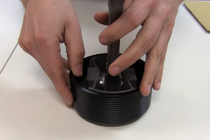 After you’ve oiled the wrist pin and skirts of the piston, it’s time to add the compressor and install the parts. You’ll want to not only be careful with how you insert the piston and rod, but you’ll also want to make sure everything is oriented correctly. The valve relief pockets need to be in the correct position on top of the piston based on where the valves are in the cylinder head. After you’ve done that, you’ll just need to hold the ring compressor and tap on the top of the piston so it drops into place. You’ll want to make sure that you don’t cause the piston to bind in the bore; to prevent this, you’ll want to evenly tap on different areas of the piston.