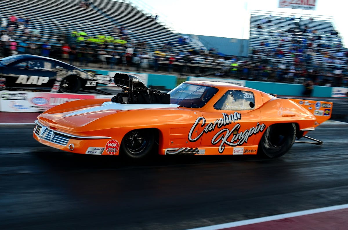 Based on the strength of a .016 starting-line advantage, Lugoff, SC’s Jeremy Ray steered his supercharged “Carolina Kingpin” ’63 Corvette to a 5.78-seconds pass at 248.07 mph over the Motorplex quarter mile to beat by just five-thousandths of a second, a quicker and faster 5.77 at 255.53 mph put together by Canadian Justin Bond in a twin-turbocharged ’68 Firebird.