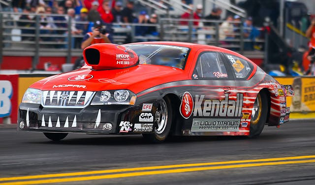 While Mopar-sponsored racer Allen Johnson was collecting yet another trophy in the ultra-thin mountain air that’s become his personal kingdom in recent years, fellow Mopar compatriot V. Gaines was enjoying his finest weekend of the season at his home track in his Kendall Oil Dodge Avenger.