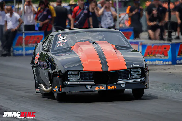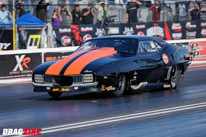 In round two, Camp and his tuner, Brandon Stroud, set the “Hells Bells” 1969 Camaro — sporting power from a ProLine Racing Hemi with a ProCharger supercharger — on kill, as it stormed to a 3.542 at 213.88 mph to drive around Raymond Matos for the round win. With the required backup already in hand, Camp delivered the class’ performance benchmark back to the ProCharger contingent.