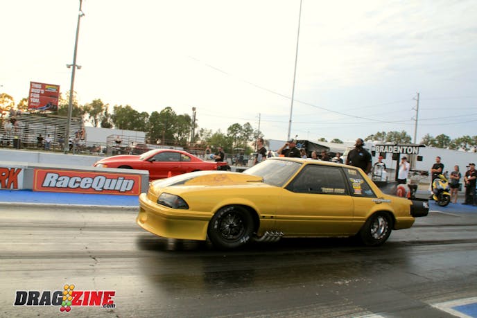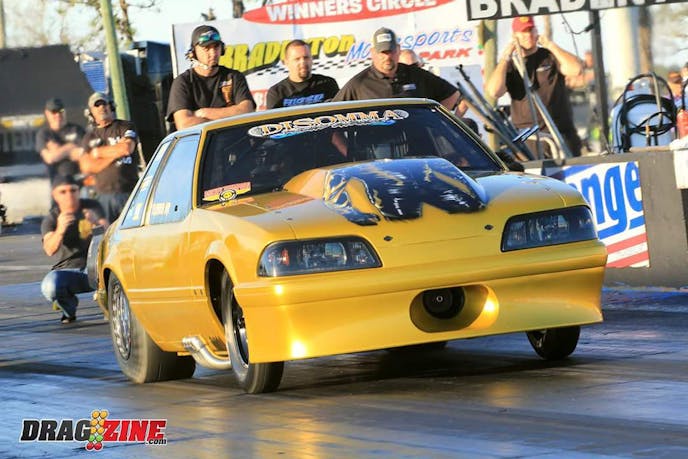 The Gold Dust Mustang that NFL defensive lineman Fletcher Cox owns got more than a fresh coat of paint this offseason — it gained an all-new driveline, as well. The DiSomma Racing Engines powerplant is backed by a Proformance Racing Transmission and Neal Chance Racing Converters torque converter. A FuelTech FT600 controls the entire package as Ayers makes his runs down the track. The biggest change is the switch from a turbo as a power-adder to a class-legal ProCharger supercharger.