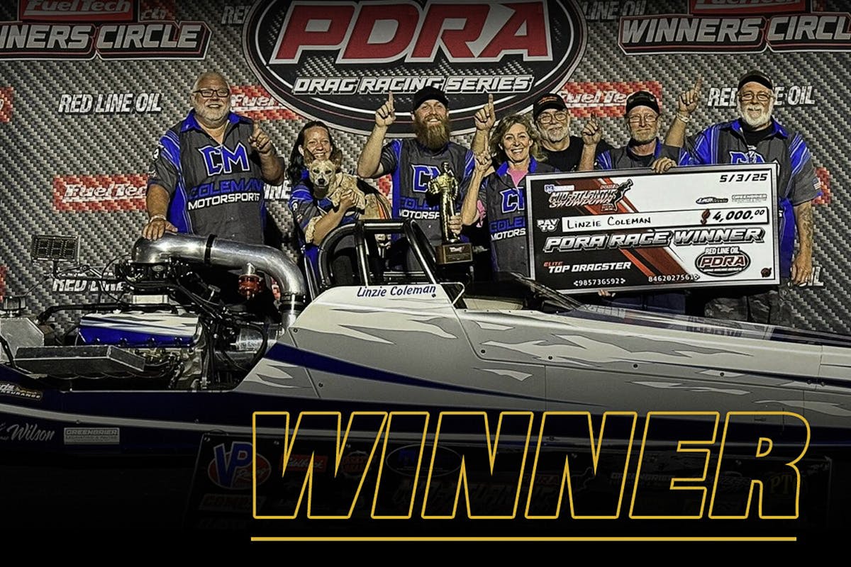 The Top Dragster racers also took advantage of some ProCharged power to pick up wins. Ed Burnley and Linzie Coleman won Top Dragster classes at the PDRA Mid-Atlantic Showdown. Rusty Baxter and Jeff Strickland scored a Top Dragster Wally at the St. Louis NHRA Divisional event.