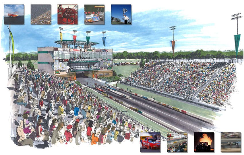 Currently, there’s a group in Minneapolis, Minn. trying to become the next success story and bring big time auto sports to their state. The IMEDC, or International Motorsports Entertainment and Development Corporation, is seeking backing and support to give Minnesota a second stop on the NHRA tour. IMEDC is a collaboration of professionals with a wide range of experience including motorsports facility design, development, and construction in the racing industry. The vision is a world-class racing park in the Minneapolis-St. Paul metro area. The NHRA and NASCAR sanctioning bodies have not promised any future dates to the IMEDC, but they’re banking on the build and “we will race” plan. The project includes a state-of-the-art 1/4-mile dragstrip and a 7/8-mile paved oval for the roundy-round NASCAR crowd at a budget price of $500 million dollars.