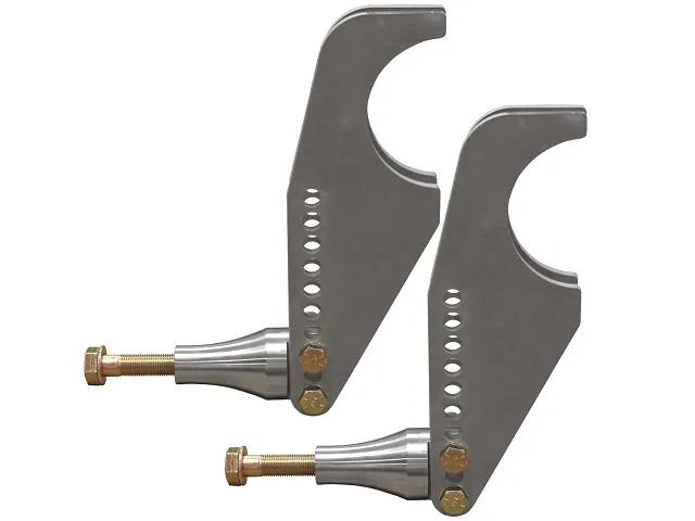 The universal kit features housing brackets are made of 1/4″ mild steel and fit 3″ O.D. axle tubes. The billet shock mount utilizes 3/8″ grade 8 bolts to mount to the bracket. A 1/2″-20 grade 8 bolt is used to mount the coil-over shock to the billet shock mount. There is 5″ of height adjustment in 1″ increments between the billet shock mount and the brackets. The billet shock mounts are made of 4130 and are available in mounting widths of 3/4” or 1-1/2” to fit either steel or poly rod ends.