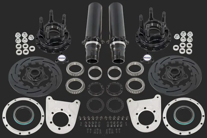 A floater rearend isn’t cheap, so you need to make sure you purchase one that will have all the features you need. The spindles should be made from chrome-moly steel and have a larger inner bearing radius so the axle tube will have a larger portion engaged, preventing deflection. The hubs should be made of strong billet aluminum, and you should have options for different floating rotor materials. Strange Engineering’s floater-style rearends offer all of these options and much more.
