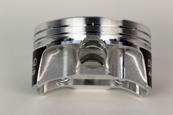 With the information and experience gained from the BlownZ collaboration, Diamond had a base to develop the LS2K piston as a shelf-stock part. For an application like this, a forged design that is fully strutted is used. The crown and ringlands are reinforced to provide additional strength for the piston to assist with its ability to survive high levels of boost. Diamond adapted a valve pocket style that can use 15-degree and 12-degree aftermarket heads along with the standard OEM-style heads.