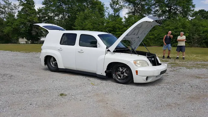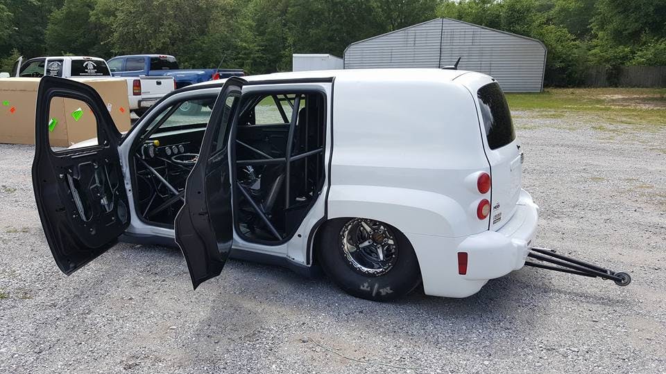 Yes, the title is correct. A Chevrolet HHR has been converted into a bracket racing machine with a lot of tube chassis and custom work done by renowned builder Joey Martin of Joey Martin Race Cars in Milton, Florida.