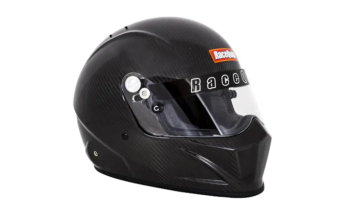 Reinforced M6 threaded HANS/FHR inserts are mated to the shell along with an expanded polystyrene (EPS) liner. HANS or other head and neck restraint device anchor posts (not included) can be easily attached to the outside of the helmet using the installed M6 threaded inserts. The distortion free 3mm polycarbonate faceshield features a molded thumb catch, aluminum pivot kit, hand ratcheting TearOff posts, and a silicone eyeport gasket to seal out dust and dirt. A wide eyeport provides good peripheral vision and allows the use of personal eyewear. An extra set of cheek pads are included to allow a customized fit. The dual certificationratings means that the Nomex interior, Kevlar chin strap, and exterior paint are fire retardant so the RaceQuip VESTA15 Carbon Helmet is suitable for use in all forms of motorsports. The comfort fit blended Nomex interior along with exhaust vents on the top and back of the shell help keep your scalp cool. Available in sizes Small -2XL for under $600. from any RaceQuip dealer.