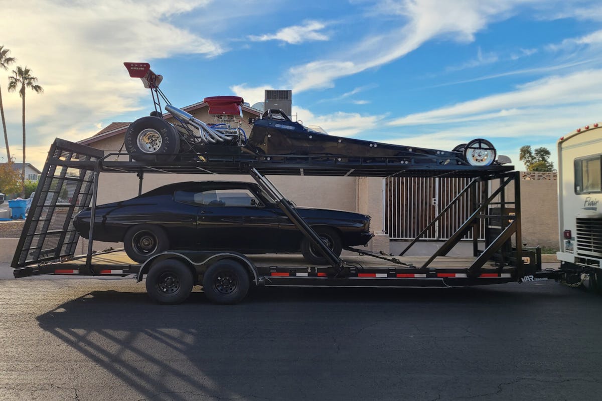 Fast forward to 2023 and Fleetwood’s daughter, Dorothy, had turned 18 and he thought it was time that she graduated to a full-size dragster. The problem was that the new dragster, combined with Fleetwood’s 1972 Chevelle, would not fit in their existing trailer, and he didn’t have the room to store a longer trailer at Phoenix, Arizona-based home.