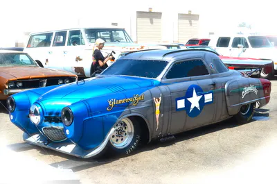 Having a unique race car is something that can make drag racing fun, because seeing nothing but Camaros, Mustangs, and S-10s at the drag strip can get quite mundane. Some racers set out on a build to see how customized they can make their car, while others find a unique car to start with and go to town. Over on RacingJunk we found a 1951 Studebaker Commander that’s purely distinctive with an over-the-top paint job and big power under the hood, going by the name “Glamorous Gal”.