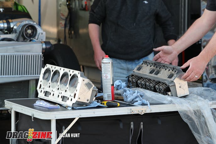 Not being one to waste time, Monday was on the phone as soon as they left the track to start finding parts for the car. First on the list was a body since there was literally nothing left of the original that was on the car. A new one was located in Panama City, Florida and Monday hit the road to pick it up, driving straight there from his shop in Tennessee. The car was then placed on the jig and torn down to see what needed to be replaced. While all that was happening engine builder Rick Hickman was tearing the engine down to make sure it was fine.