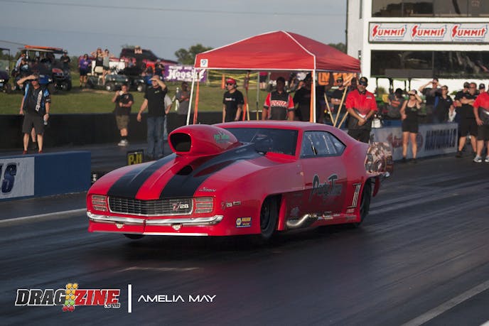 In the first round of Outlaw Big Tire, Scott Jost in his first-generation Camaro lost control when he was racing Phillip Weaver in his blue GTO. Jost bounced off his wall which sent him slamming into Phillip’s wall after the initial impact. After the crash, Jost exited his car unharmed as the safety equipment did its job in keeping him safe during his wild ride. During the Outlaw Small Tire class final, Cody Jones spun giving the win and the $10,000 prize to Brent Self.