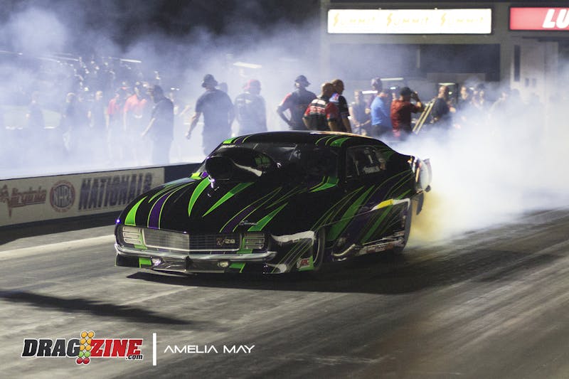 In the first round of Outlaw Big Tire, Scott Jost in his first-generation Camaro lost control when he was racing Phillip Weaver in his blue GTO. Jost bounced off his wall which sent him slamming into Phillip’s wall after the initial impact. After the crash, Jost exited his car unharmed as the safety equipment did its job in keeping him safe during his wild ride. During the Outlaw Small Tire class final, Cody Jones spun giving the win and the $10,000 prize to Brent Self.