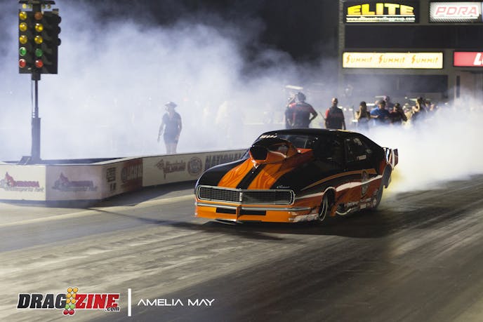 In the first round of Outlaw Big Tire, Scott Jost in his first-generation Camaro lost control when he was racing Phillip Weaver in his blue GTO. Jost bounced off his wall which sent him slamming into Phillip’s wall after the initial impact. After the crash, Jost exited his car unharmed as the safety equipment did its job in keeping him safe during his wild ride. During the Outlaw Small Tire class final, Cody Jones spun giving the win and the $10,000 prize to Brent Self.
