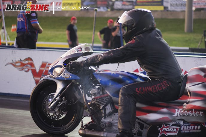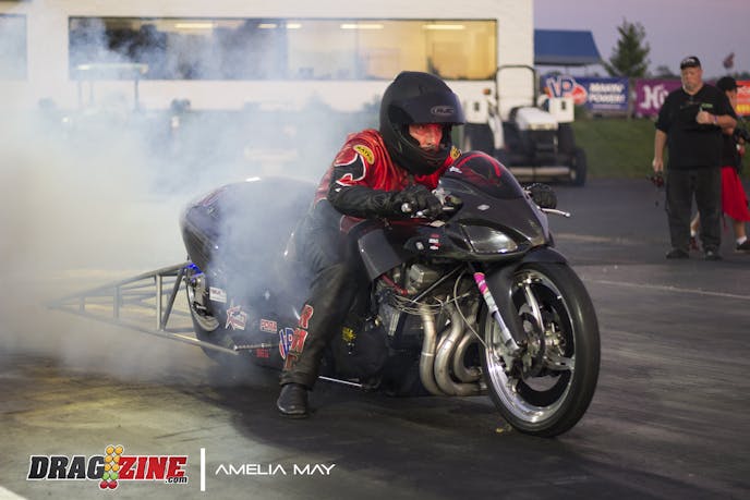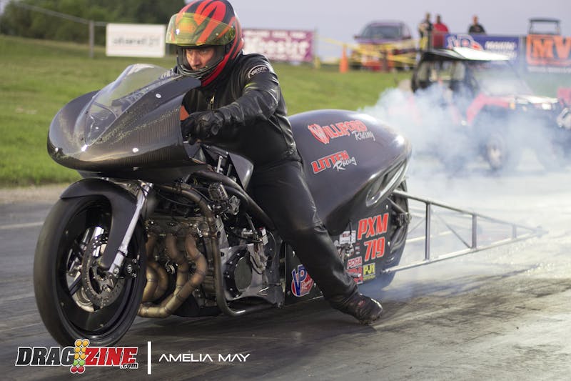 Chris Varni lined up with Clint Downs during Small Tire class action with their run having an interesting conclusion. Varni was paying attention to the win lights over the fast-approaching end of the track and things almost got ugly.