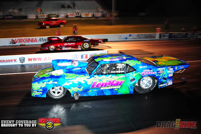 Texas native Doug Reisterer, who stole the show at the ADRL Gateway Drags in St. Louis earlier this month when he arrived on the final day of the event, made a run in the final qualifying session, and proceeded to mow his way through the Pro Nitrous field to victory circle, put on an encore performance last weekend in Virginia when he virtually dominated the U.S. Drags V for his second straight victory in the category.
