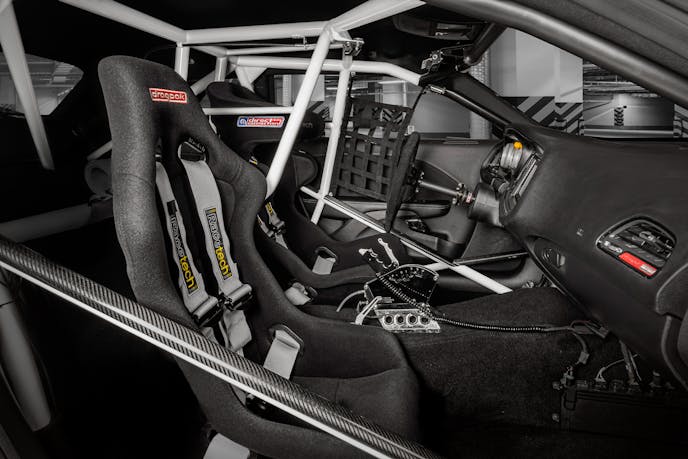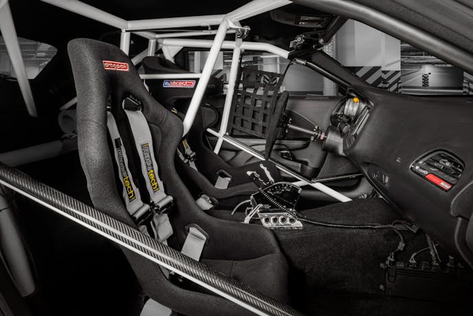 Rounding out the Factory Stock racing class feel on the interior are custom-cut lightweight carpeting, carbon fiber tube protectors and SFI-compliant roll bar padding.