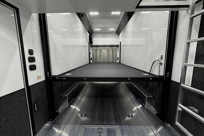 Need a new trailer to pull behind this 2025 Renegade 45’ CBF Bunkbed Model motorcoach? Flying A Motorsports has you covered with a 2024 28’ inTech Premium Stacker trailer. This trailer features triple 7K axles, and a 11’4” internal height. Inside the trailer, you’ll find a 16’ EZ Load tilting split rail lift that has a 6,000-pound capacity. This inTech trailer boasts plenty of cabinet space and has a tongue-mounted generator box with a slide.