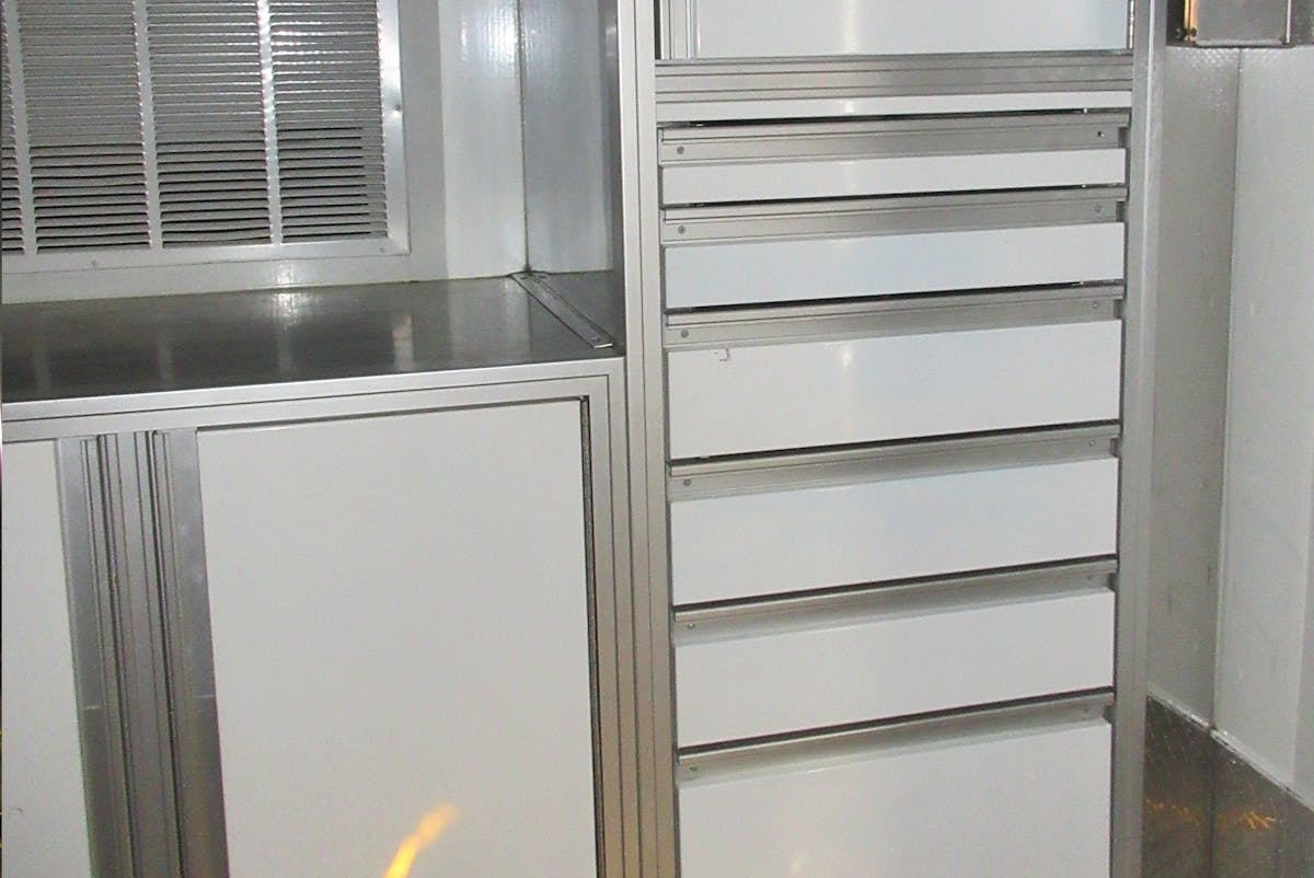 A wealth of cabinets, drawers and closet space are a trademark of Renegade's stainless steel and aluminum storage quality.
